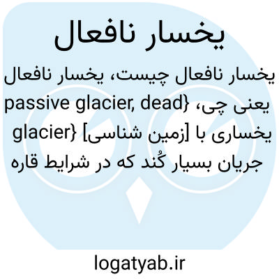 {passive glacier, dead glacier} [زمین شناسی] یخساری با جریان بسیار کُند که در شرایط قاره ای عرض های بالایی کرۀ زمین، جایی که مقدار انباشت و یخ کاست ناچیز است، رخ می دهد