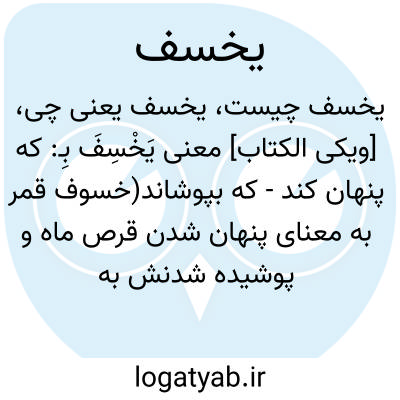 [ویکی الکتاب] معنی یَخْسِفَ بِـ: که پنهان کند - که بپوشاند(خسوف قمر به معنای پنهان شدن قرص ماه و پوشیده شدنش به ظلمت و سایه است، و اگر گفته شود: خسف الله به الأرض معنایش این است که خداوند او را در زمین پوشانید)