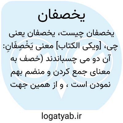 چسباندن. قرار دادن - طه:121 شروع کردند بر دو عورت خویش از برگهای باغ بچسبانند و قرار دهند تا عورتشان مستور گردد. طبرسی فرماید: اصل خصف ضمّ و جکع کردن است در اقرب الموارد آمده: «خصف العریان الورق علی بدنه: الصقه و اطبقه علیه ورقة ورقة لیستترو فی القرآن «وَ طَفِقا یَخْصِفانِ عَلَیْهِما مِنْ وَرَقِ الْجَنَّةِ». این کلمه فقط در دو محلّ فوق در قرآن مجید آمده است. در نهج البلاغه خطبه 158 در وصف حضرت رسول صلی اللّه علیه و آله و سلم فرموده «یَخْصِفُ بِیَدِهِ نَعْلَهُ وَ یَرْقَعُ بِیَدِهِ ثَوْبَهُ»: با دست خود کفش خویش را می‏دوخت و لباس خویش را وصله می‏زد و حدیث «ختصف النعل» که آنحضرت درباره علی علیه السلام فرموده مشهور است ابو سعید خدری نقل کرده رسول خدا فرمود از شما کسی است که روی تأویل قرآن می‏جنگد چنانکه من روی تنزیل جهاد کردم. ابوبکر گفت: او منم؟ فرمود نه. عمر گفت: او منم؟ فرمود: «لاولکنّه خاصف النعل» متوجّه شدیم دیدیم علی (ع) کفش آن حضرت را وصله می‏زند.