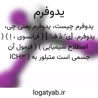 (اسم ) جسمی است که درسال ۱۸۲۴ شناختهشد این جسم خشک ومتبلوراست وبلورهایش ۶ وجهی میباشند وبرنگ زرد لیمویی هستندوزن مخصوص آن ۲/٠۵ ودر آب نامحلول است ولی درالکل سرد بنسبت ۸٠ درصدحل میشود و درالکل جوشان کمترمحلول است ( بنسبت ۱۲ درصد ) دراثر بنسبت ۶ درصد حل میشود ودرروغن ها نیز بهمین نسبت محلول است محلولهای ید و فرم در برابر روشنایی تغییر رنگ میدهند بعلت آزادکردن ید یدوفرم دارای بویی تند و نافذ است و غالبا آنرا از اثر دادن ید برروی الکل درمجاورت کربنات پتاسیم بدست می آورند یدوفرم مصرف طبی داردو بیشتر آنرا بصورت پودر جهت درمان زخمها و یابصورت مش آغشته به یدوفرم دردرمان زخم دملهای شکافتهشده وکیست ها بکار میبرند وچون سم شدیدی است مصرف آن بصورت داروی خوراکی بسیارکم است واحتیاط لازم دارد در صورت لزوم در حدود چندسانتی گرم در روز بصورت حب تجویز میشود.