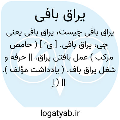 یراق بافی. [ ی َ ] ( حامص مرکب ) عمل بافتن یراق. || حرفه و شغل یراق باف. ( یادداشت مؤلف ). || ( اِ مرکب ) دکان یراق باف.