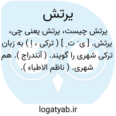 یرتش. [ ی َ ت ِ ] ( ترکی، اِ ) به زبان ترکی شهری را گویند. ( آنندراج ). هم شهری. ( ناظم الاطباء ).
