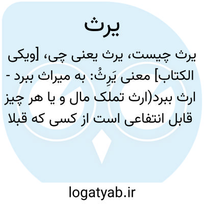 [ویکی الکتاب] معنی یَرِثُ: به میراث ببرد - ارث ببرد(ارث تملک مال و یا هر چیز قابل انتفاعی است از کسی که قبلا او مالک بوده و با زوال او، ملک او به دیگری منتقل شده)