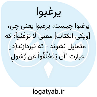 [ویکی الکتاب] معنی لَا یَرْغَبُواْ: که متمایل نشوند - که نپردازند(در عبارت "أَن یَتَخَلَّفُواْ عَن رَّسُولِ ﭐللَّهِ وَلَا یَرْغَبُواْ بِأَنفُسِهِمْ عَن نَّفْسِهِ "جزم آن به دلیل حرف "أن"در ابتدای جمله است)