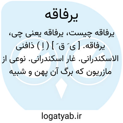 یرفاقه. [ ی َ ق َ ] ( اِ ) ذافنی الاسکندرانی. غار اسکندرانی. نوعی از مازریون که برگ آن پهن و شبیه به برگ درخت غار است از این رو شبیه الغار نیز گویند و در مغرب مازره یا مازریون و در شام بقله نامند. ( یادداشت مؤلف ). و رجوع به ذافنی و ذافنی الاسکندرانی شود.