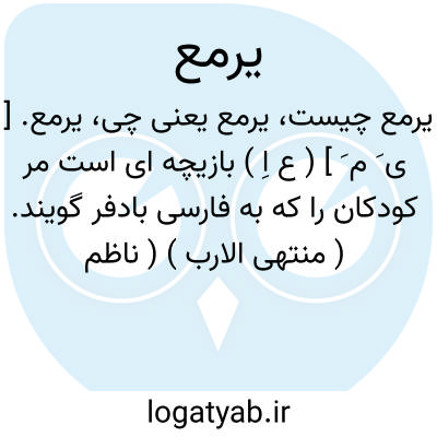 یرمع. [ ی َ م َ ] ( ع اِ ) بازیچه ای است مر کودکان را که به فارسی بادفر گویند. ( منتهی الارب ) ( ناظم الاطباء ) ( آنندراج ). || یک نوع سنگ سپیدی است که در شکستن ریزه ریزه گردد و چون کسی اندوهگین و شکسته دل باشد می گویند: ترکته یفت الیرمع. ( منتهی الارب ) ( ناظم الاطباء ) ( آنندراج ). سنگ سفید. ( برهان ). سنگ سفید. ج، یرامع. ( مهذب الاسماء ). سنگ سپیدی است که در آفتاب می درخشد.و یلمع همچنین. ( فقه اللغة ثعالبی ). و ثعالبی ذیل بیاض اقسام مختلف آرد: الیرمع؛ الحجر الابیض. ( ص 41 ).