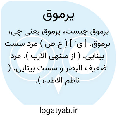 یرموق. [ ی َ ] ( ع ص ) مرد سست بینایی. ( از منتهی الارب ). مرد ضعیف البصر و سست بینایی. ( ناظم الاطباء ).