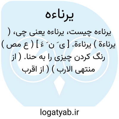 ( یرناءة ) یرناءة. [ ی َ ن َ ءَ ] ( ع مص ) رنگ کردن چیزی را به حنا. ( از منتهی الارب ) ( از اقرب الموارد ).