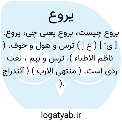 یروع. [ ی َ ] ( ع اِ ) ترس و هول و خوف. ( ناظم الاطباء ). ترس و بیم، لغت ردی است. ( منتهی الارب ) ( آنندراج ). هراس. ( یادداشت مؤلف ).