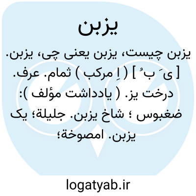 یزبن. [ ی َ ب ُ ] ( اِ مرکب ) ثمام. عرف. درخت یز. ( یادداشت مؤلف ): ضغبوس؛ شاخ یزبن. جلیلة؛ یک یزبن. امصوخة؛ برگ و شاخ یزبن. ( منتهی الارب ). و رجوع به یز شود.