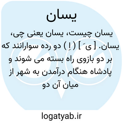 یسان. [ ی َ ] ( اِ ) دو رده سوارانند که بر دو بازوی راه بسته می شوند و پادشاه هنگام درآمدن به شهر از میان آن دو رده می گذرد. ( آنندراج ).