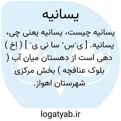 یسانیه. [ ی َس ْ سا نی ی َ ] ( اِخ ) دهی است از دهستان میان آب ( بلوک عنافچه ) بخش مرکزی شهرستان اهواز. واقع در 10 هزارگزی شمال خاوری اهواز. سکنه آن 250 تن و آب آن از رودخانه ٔکارون با موتور. راه آن اتومبیل رو و ساکنان آن از طایفه لویمی هستند. این آبادی از دو قسمت به نام بزرگ و کوچک تشکیل شده که به فاصله سه هزار گز دور از هم قرار گرفته اند. ( از فرهنگ جغرافیایی ایران ج 6 ).