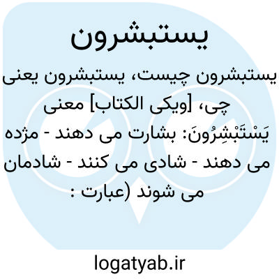[ویکی الکتاب] معنی یَسْتَبْشِرُونَ: بشارت می دهند - مژده می دهند - شادی می کنند - شادمان می شوند (عبارت: "یَسْتَبْشِرُونَ بِـﭑلَّذِینَ لَمْ یَلْحَقُواْ بِهِم مِّنْ خَلْفِهِمْ أَلَّا خَوْفٌ عَلَیْهِمْ وَلَا هُمْ یَحْزَنُونَ "یعنی: "به یکدیگر مژده میدهند که فلانیها هم از دنبال ما خواهن...