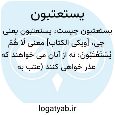 [ویکی الکتاب] معنی لَا هُمْ یُسْتَعْتَبُونَ: نه از آنان می خواهند که عذر خواهی کنند (عتب به معنای غضب و حزن است، وقتی گفته میشود: فلانی بر فلانی عتب کرد معنایش این است که غم او را خورد، و اگر برگردد و دلجوئیش کند میگویند عاتبه، و اسم این ماده عتبی است، یعنی برگشتن معتوب علیه به چیزی که مای...