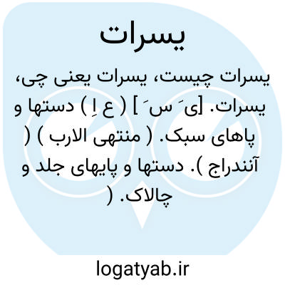 یسرات. [ی َ س َ ] ( ع اِ ) دستها و پاهای سبک. ( منتهی الارب ) ( آنندراج ). دستها و پایهای جلد و چالاک. ( ناظم الاطباء ).