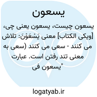 [ویکی الکتاب] معنی یَسْعَوْنَ: تلاش می کنند - سعی می کنند (سعی به معنی تند رفتن است. عبارت "یسعون فی آیاتنا معاجزین" یعنی در آیات ما جدّیت میکنند که آن را از اثر بیندازند و یا از ما پیشی بگیرند )
