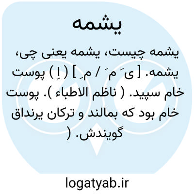 یشمه. [ ی َ م َ / م ِ ] ( اِ ) پوست خام سپید. ( ناظم الاطباء ). پوست خام بود که بمالند و ترکان یرنداق گویندش. ( از صحاح الفرس ) ( لغت فرس اسدی ). چرم و پوست خامی را گویند که به زور دستمالش رسانیده باشند نه به آتش دباغت. ( آنندراج ) ( برهان ). یرنداق.ارنداق. حمیر. حمیره. ( یادداشت مؤلف ):