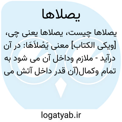 [ویکی الکتاب] معنی یَصْلاَهَا: در آن درآید - ملازم وداخل آن می شود به تمام وکمال(آن قدر داخل آتش می شود که نهایت درجه حرارت آتش را لمس کند)