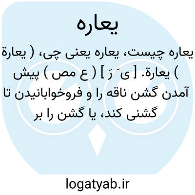 ( یعارة ) یعارة. [ ی َ رَ ] ( ع مص ) پیش آمدن گشن ناقه را و فروخوابانیدن تا گشنی کند، یا گشن را بر ماده عرض کردن تا اگر آن را قبول کند بماند والا فلا. ( منتهی الارب ) ( آنندراج ).