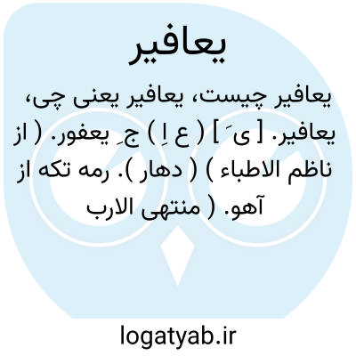 لغت نامه دهخدا یعافیر. [ ی َ ] ( ع اِ ) ج ِ یعفور. ( از ناظم الاطباء ) ( دهار ). رمه تکه از آهو. ( منتهی الارب ) ( آنندراج ). رجوع به یعفور شود.