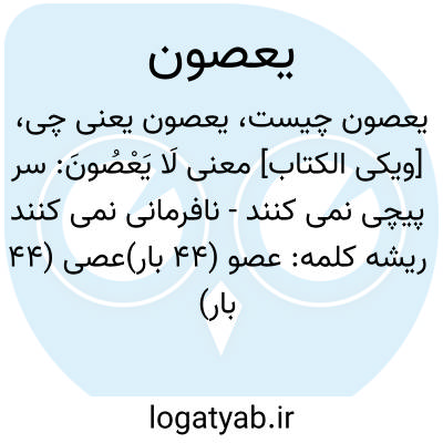 دانشنامه اسلامی [ویکی الکتاب] معنی لَا یَعْصُونَ: سر پیچی نمی کنند - نافرمانی نمی کنندریشه کلمه: عصو (۴۴ بار)عصی (۴۴ بار)