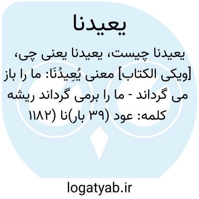 دانشنامه اسلامی [ویکی الکتاب] معنی یُعِیدُنَا: ما را باز می گرداند - ما را برمی گرداندریشه کلمه: عود (۳۹ بار)نا (۱۱۸۲ بار)