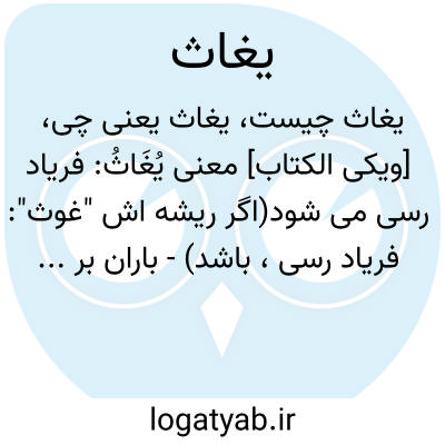[ویکی الکتاب] معنی یُغَاثُ: فریاد رسی می شود(اگر ریشه اش "غوث": فریاد رسی، باشد) - باران بر... باریده می شود (اگر ریشه اش "غیث": باران باشد) - برای... علف و گیاه رویانده می شود (اگر ریشه اش "غیث": علف باشد)