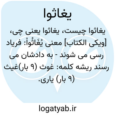 یاری. نصرت. «غاثَهُ غَوْثاً: اَعانَهُ وَ نَصَرَهُ» استغاثه: یاری خواستن.. اگر یاری خواستند یاری کرده شوند به آبی مثل روغن جوشان (نعوذ باللَّه منه) ممکن است استغاثه به معنی آب خواستن باشد از «غیث» نه از «غوث» و آن مناسب آیه است رجوع شود به «غیث». پدر و مادر در ایمان فرزندشان از خدا نصرت می‏خواهند و به فرزندشان می‏گویند: وای بر تو ایمان آور.