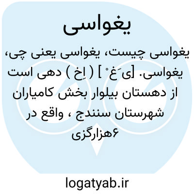 یغواسی. [ی َغ ْ ] ( اِخ ) دهی است از دهستان بیلوار بخش کامیاران شهرستان سنندج، واقع در 6هزارگزی شمال خاوری کامیاران. دارای 171 تن سکنه. آب آن از چشمه و رودخانه و راه آن مالرو است. ( از فرهنگ جغرافیایی ایران ج 5 ).