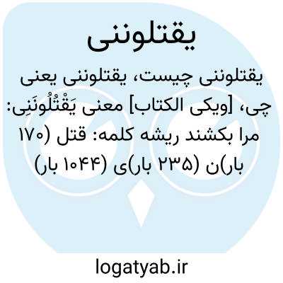دانشنامه اسلامی [ویکی الکتاب] معنی یَقْتُلُونَنِی: مرا بکشندریشه کلمه: قتل (۱۷۰ بار)ن (۲۳۵ بار)ی (۱۰۴۴ بار)