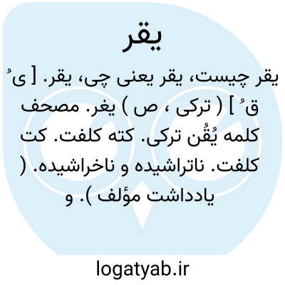 یقر. [ ی ُ ق ُ ] ( ترکی، ص ) یغر. مصحف کلمه یُقُن ترکی. کته کلفت. کت کلفت. ناتراشیده و ناخراشیده. ( یادداشت مؤلف ). و احتمال دارد ازمصدر یغورماق ( یقورماق ) ترکی به معنی خمیر کردن باشداز حیث تشبیه به خمیر ورآمده. و رجوع به یغر شود.