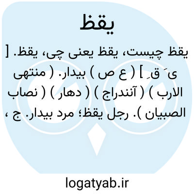 یقظ. [ ی َ ق ِ ] ( ع ص ) بیدار. ( منتهی الارب ) ( آنندراج ) ( دهار ) ( نصاب الصبیان ). رجل یقظ؛ مرد بیدار. ج، ایقاظ. ( ناظم الاطباء ) ( ترجمان القرآن جرجانی ص 108 ). || هوشیار. باهوش. ( یادداشت مؤلف ). مرد زیرک و هوشیار. ( از ناظم الاطباء ). هشیار. ( منتهی الارب ) ( آنندراج ).
