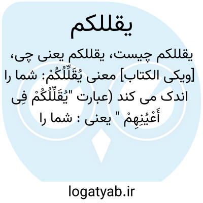 [ویکی الکتاب] معنی یُقَلِّلُکُمْ: شما را اندک می کند (عبارت "یُقَلِّلُکُمْ فِی أَعْیُنِهِمْ " یعنی: شما را در چشم آنان اندک نشان داد. بعد از "إذ" مضارع ماضی معنی شده است)