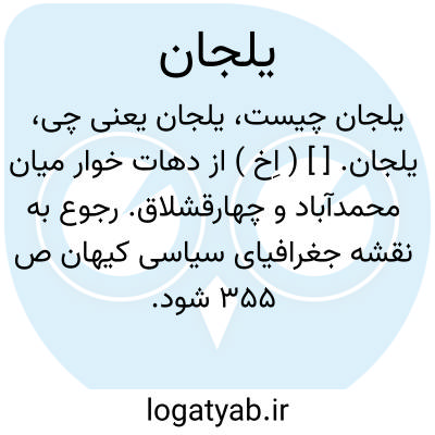 لغت نامه دهخدا یلجان. [ ] ( اِخ ) از دهات خوار میان محمدآباد و چهارقشلاق. رجوع به نقشه جغرافیای سیاسی کیهان ص 355 شود.