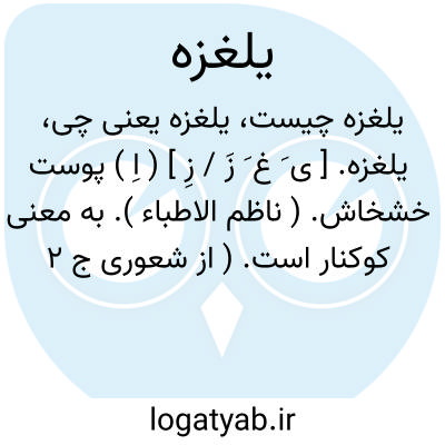 یلغزه. [ ی َ غ َ زَ / زِ ] ( اِ ) پوست خشخاش. ( ناظم الاطباء ). به معنی کوکنار است. ( از شعوری ج 2 ورق 448 ).
