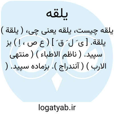 ( یلقة ) یلقة. [ ی َ ل َ ق َ ] ( ع ص، اِ ) بز سپید. ( ناظم الاطباء ) ( منتهی الارب ) ( آنندراج ). بزماده سپید. ( از مهذب الاسماء ). || واحد یلق. ( ناظم الاطباء ). یکی یلق. ( منتهی الارب ) ( آنندراج ).