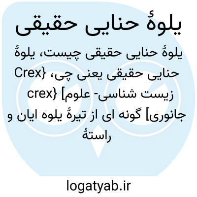 {Crex crex} [زیست شناسی- علوم جانوری] گونه ای از تیرۀ یلوه ایان و راستۀ درناسانان که قسمت بالایی بدن آن رگه دار است و بال ها حنایی مایل به قهوه ای و صورت و جلوی گردن و قفسۀ سینه آبی مایل به خاکستری است