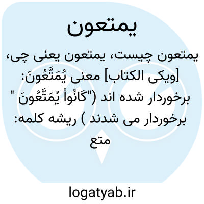 دانشنامه اسلامی [ویکی الکتاب] معنی یُمَتَّعُونَ: برخوردار شده اند ("کَانُواْ یُمَتَّعُونَ " برخوردار می شدند )ریشه کلمه: متع (۷۰ بار)