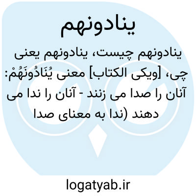 [ویکی الکتاب] معنی یُنَادُونَهُمْ: آنان را صدا می زنند - آنان را ندا می دهند (ندا به معنای صدا زدن و خواندن با صدای بلند است )