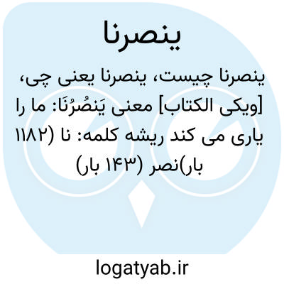 دانشنامه اسلامی [ویکی الکتاب] معنی یَنصُرُنَا: ما را یاری می کندریشه کلمه: نا (۱۱۸۲ بار)نصر (۱۴۳ بار)