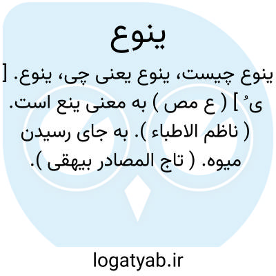 ینوع. [ ی ُ ] ( ع مص ) به معنی ینع است. ( ناظم الاطباء ). به جای رسیدن میوه. ( تاج المصادر بیهقی ). رسیدن ثمر و هنگام درودن رسیدن. ( آنندراج ). و رجوع به ینع شود.