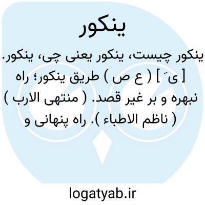 ینکور. [ ی َ ] ( ع ص ) طریق ینکور؛ راه نبهره و بر غیر قصد. ( منتهی الارب ) ( ناظم الاطباء ). راه پنهانی و مخفی.