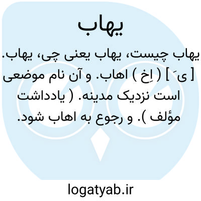لغت نامه دهخدا یهاب. [ ی َ ] ( اِخ ) اهاب. و آن نام موضعی است نزدیک مدینه. ( یادداشت مؤلف ). و رجوع به اهاب شود.