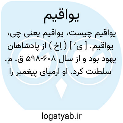 لغت نامه دهخدا یواقیم. [ ی ُ ] ( اِخ ) از پادشاهان یهود بود و از سال 608-598 ق. م. سلطنت کرد. او ارمیای پیغمبر را شکنجه داد و سرانجام به دست بخت النصر برافتاد و به بابل تبعید گردید. ( از قاموس الاعلام ترکی ).