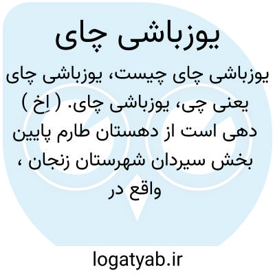 یوزباشی چای. ( اِخ ) دهی است از دهستان طارم پایین بخش سیردان شهرستان زنجان، واقع در 82000گزی سیردان از طریق پاچنار و 63000گزی از طریق بهقانه رود و 1000گزی راه شوسه قزوین به رشت، با 391 تن سکنه. آب آن از رودخانه است. متصل به راه شوسه بوده و معدن زاج سفید در مزرعه قمارلو تابع این ده است. چهار باب قهوه خانه و رستوران کنار راه شوسه دارد. ( از فرهنگ جغرافیایی ایران ج 2 ).