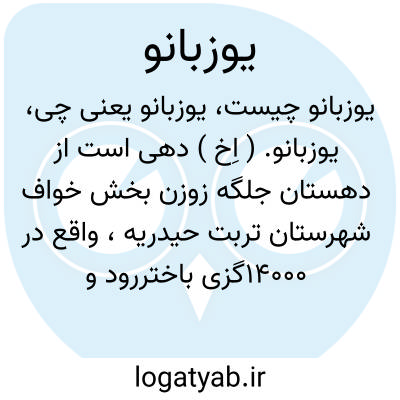 یوزبانو. ( اِخ ) دهی است از دهستان جلگه زوزن بخش خواف شهرستان تربت حیدریه، واقع در 14000گزی باختررود و 9000گزی باختر پیش رو سلامی به قاین، با 136 تن سکنه. آب آن از قنات و راه آن مالرو است. ( از فرهنگ جغرافیایی ایران ج 9 ).