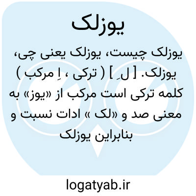 لغت نامه دهخدا یوزلک. [ ل ِ ] ( ترکی، اِ مرکب ) کلمه ترکی است مرکب از «یوز» به معنی صد و «لک » ادات نسبت و بنابراین یوزلک به معنی صدی یا دارای صد «قرش » وآن سکه ای مصری از سیم است که ارزش آن برابر صد قرش یا قریب به صد قرش است. ( از النقود العربیة ص 188 ).