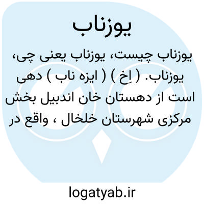 یوزناب. ( اِخ ) ( ایزه ناب ) دهی است از دهستان خان اندبیل بخش مرکزی شهرستان خلخال، واقع در 14هزارگزی باختری هروآباد، با 114 تن سکنه. آب آن از چشمه و راه آن مالرو است. ( از فرهنگ جغرافیایی ایران ج 4 ).