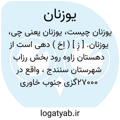 لغت نامه دهخدا یوزنان. [ زِ ] ( اِخ ) دهی است از دهستان زاوه رود بخش رزاب شهرستان سنندج، واقع در 27000گزی جنوب خاوری رزاب و4000گزی پالنگان، با 200 تن سکنه. آب آن از چشمه و راه آن مالرو است. ( از فرهنگ جغرافیایی ایران ج 5 ).