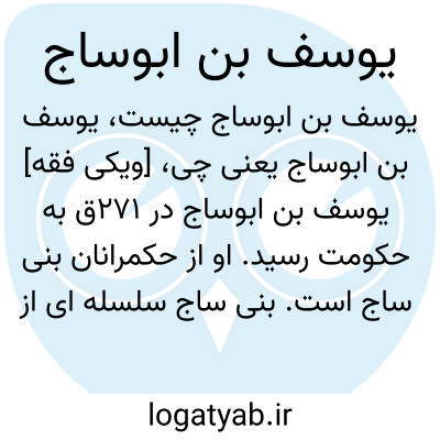 [ویکی فقه] یوسف بن ابوساج در ۲۷۱ق به حکومت رسید. او از حکمرانان بنی ساج است. بنی ساج سلسله ای از امیران ایرانی راهدار حرمین و حاکم آذربایجان در سده سوم ق. بودند.
